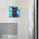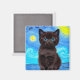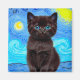 Magnet com um gato negro na pintura de Van Gogh Starry Night! Este gatinho de olhos azuis brilha adoravelmente de um fundo de espirais azuis e uma lua amarela brilhante. Um presente fantástico para amantes de gatos e colecionadores de arte holandeses!
