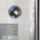 Magnet com um gatinho de smoking ao estilo de Vincent van Gogh! Este gatinho bonito se posiciona com flores roxas. Um presente magnífico para amantes de gatos e colecionadores de arte holandeses!