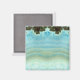A design dessa imã salve a data de celebração na moda apresenta uma imagem de um belo pedaço de cristal de geodo agado bem polido em delicadas sombras de azul aqua, turquesa e cinza mostrando os intrincados e ondulantes padrões do cristal. Está pronto para ser personalizado para uma doce festa de 16, casamento, noivado, aniversário, por exemplo. A imagem de cristal de agato azul pode ser redimensionada ou reposicionada para ajustado de ímanes de tamanho ou forma diferentes com os símbolos +- e as setas acessíveis através do menu personalizá-la. Procure um conjunto de artigos de papelaria em minha Coleção de Gemas e Cristais Azuis.