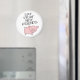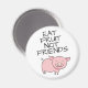Imã de geladeira de vegan bonita com um adorável leitão cor-de-rosa com a legenda Comer fruta não amigos em preto, todos os bonés com letra manuscrita.