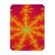Este incrível ímã apresenta uma imagem fractal que lembra uma tempestade em Vênus. Ele tem um fundo laranja brilhante com linhas amarelas brilhantes saindo do centro que se parecem com raio queimando. No centro de cada raio há uma linha azul que me lembrou de uma veia que resultou no título "Venous Thunderstorm".