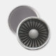Vista frontal de um moderno motor de turbina a jato mostrando as pás das ventoinhas e o motor de prata brilhante que se encobre.