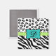 Você vai adorar este na moda e um ímã monograma divertido. As listras de zebra coloridas e as peles de chita para design gráfico são uma das tendências mais quentes de arte e design, e são extremamente populares de moda a decoração doméstica. Esta sofisticada coleção de impressão preto e branco com verde limão e azul-lacrimogêneo e turquesa é uma das várias combinações de cores disponíveis. Um emblema de turquesa cria uma área de personalização. Isso é totalmente personalizável para personalizar e incluir seu nome, iniciais de monograma, nome comercial ou outras palavras para transmitir sua mensagem. Vai à loucura com estas designs de pele selvagem!