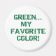 O texto verde diz "Verde é Minha Cor Favorita!" sobre a consciência ambiental T-shirts, canecas, botões, adesivos, sacos de tote e outros itens que promovem a manutenção do nosso mundo limpo e salvador do planeta!