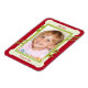 Imã de foto de presente da mamãe. Vermelho e verde, com flores, corações e listras. Mamãe, eu te amo