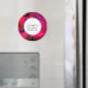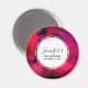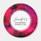 Ímã de aniversário com um fundo abstrato legal. Pinceladas vermelhas escuras e roxas criam um design vibrante moderno e ousado. Um círculo sobreposto no topo com um texto personalizado dentro.