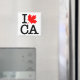 Decorate your fridge with this magnet with the Canadian Maple Leaf in red. The text is a version of American Typewriter. The text is bold and black. You can read it as "I Love Canada". CA is the two letter ISO country-code for Canada.