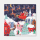 A Noite antes do Natal com o Papai Noel no trenó e suas renas Rudolf a rena sobre uma cena de paisagem de Natal de uma aldeia nórdica ilustração de férias de Natal. Obra de arte original de Caroline Bonne Müller