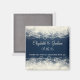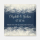Um desenho abstrato elegante rico com rendas colorido creme e pérolas feitas com círculos e bolhas. O fundo é azul escuro com quadrados desbotados ao lado. design bonito e delicado. Personalize/personalize com o nome do noivo e noivas e a data do casamento, com o texto que lê "obrigado para comemorar conosco.