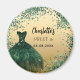 Para um Sweet 16 elegante, 16º aniversário. Um fundo com aparência de ouro falso. Decorado com um vestido verde esmeralda e confetes verdes. Personalize e adicione um nome e uma data.