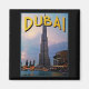 A exótica cidade de Dubai brilha gloriosamente neste deco inspirou a design. Um arranha-céu alto e mais linha do horizonte contra um céu dramático e água abaixo.