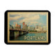 Design no estilo Viagens vintage de Portland Oregon com uma vista de horizonte de horizonte urbano expansiva.
