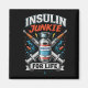 Um gráfico ousado e arrojado com seringas cruzadas e um frasco de insulina com raios, celebrando a vida diabética com humor desafiador.