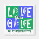 Promova a doação de órgãos de uma forma muito simples colocando este ímã no seu frigorífico ou no seu arquivo no trabalho. Também faz um presente de excelente. As icônicas cores verde e azul Doar Vida são as principais cores destacadas nesta design. A vida ao vivo e depois os ímãs da vida.