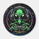 Alienígena extraterrestre tocando videos games com um controlador e fones de ouvido. Excelente para crentes e fãs da Ufologia.