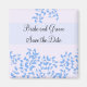 Compartilhe seu dia especial com este elegante design de vinha azul. Em um fundo branco com uma banda de azul com pequenas bolinhas brancas para destacar seus nomes e data. Personalizar conforme desejado.