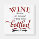 "Vinho porque não é bom manter as coisas engarrafadas" é o ditado engraçado neste ímã de geladeira. O texto estilizado está em vermelho e preto.