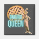 Design de diversão para as mulheres que amam o assar apresenta uma vintage figurante com chapéu de rico, texto de neon "Baking Queen" e torta de crosta de latice em fundo de cinza escura