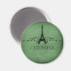 Magneta verde-florestal elegante, mas elegante, Vintage francês, com design de Torre Eiffel embelezada por espirais e pontos quentes e um fundo texturizado em papel falso. Este ímã temático parisiense único irá adicionar um talento francês engraçado em qualquer lugar onde você o colar! Fácil de personalizar, basta adicionar o texto personalizado de sua escolha no campo de texto fornecido. Clique no botão "Personalizar a TI" para encontrar opções adicionais de personalização.