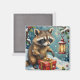 Imã Vintage Raccoon Opening Christmas Gift Box Art
