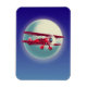 Vintage Red Biplane passando por uma bela lua de cheio.
