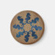 Este belo design tem um olhar antigo com os brilhantes azuis do círculo de cavalos do mar batik num fundo profundo de colheita marrom.