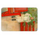 Carl Larsson, um artista de aquarela do século XIX, da Suecia, pintou uma garotinha chamada Greta em frente a uma árvore de Natal, um banco vermelho e uma cadeira vermelha de balanço. Ela está vestida para o inverno com um cacete de pele e casaco. Íman de férias escandinavo. Deus Jul!