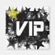 Francês de estrelas pretas desbotadas e rachadas, agrupadas para criar um gráfico único envelhecido com "VIP" escrito no centro em uma fonte branca moderna de stub de tíquetes. Uma foto esmaecida de uma estrela ouro pode ser vista no canto superior esquerdo.
