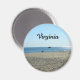 Cena de areia e mar em Virgínia Beach, Virginia. "Virgínia" está escrito no topo.