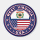 Crachá da Virgínia Ocidental com bandeira da Virgínia Ocidental e bandeira dos EUA cores, forma arredondada. Emblema da Virgínia Ocidental,