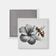 uma macro vista detalhada de uma abelha de mel polinizando uma flor de hibisco. Essa representação em preto-e-branco destaca as delicadas texturas do corpo do felpudo da abelha justapostas contra as pétalas moles, revelando um mundo muitas vezes ignorado.