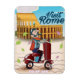 Visite o poster de viagens de desenho animado de Roma - Roma Itália, robotizando o cartão de viagem de patinete.
