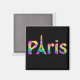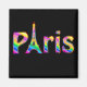 Um design tão divertido quanto Paris. O texto Paris em uma vívida matriz de um arco-íris de cores com o "A" em Paris e um esboço da Torre Eiffel.
