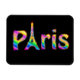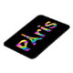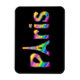 Um design tão divertido quanto Paris. O texto Paris em uma vívida matriz de um arco-íris de cores com o "A" em Paris e um esboço da Torre Eiffel.
