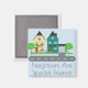 Diga aos seus vizinhos o quão especiais eles são para você com um ímã personalizado. Duas casas, adicione nomes, com a mensagem "Vizinhos são Amigos Especiais"