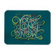 BEASTAS FANTÁSTICOS E ONDE ENCONTRÁ-LOS™ | Esta tipografia ornamentado diz: Você é um de nós agora. Este gráfico é colorido em um gradiente verde a amarelo.