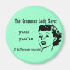Gramática Lady diz: você e você são duas palavras diferentes! Gramática Lady quer que você se lembre que o seu é um possessivo pertencente a você e você é uma contração de você. Design simples de cor do solteiro com texto e rosto.
