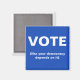 Um ímã eleitoral com um quadrado azul que diz Vote (como sua democracia depende disso).