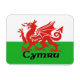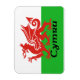 A bandeira do País de Gales, ou Cymru. apresentando o Ddraig Goch, ou o Dragão Vermelho do País de Gales decora este ímã.
