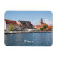 Este imã de souvenir apresenta uma fotografia do porto e da Cidade Velha em Waren, Müritz, Mecklenburg Vorpommern, Alemanha. O texto é personalizável ou removível. Os ímãs fazem um presente ideal, ou um presente pessoal para ficar no seu frigorífico ou no armário. Este ímã mede 7,6 cm x 10,2 cm (3" x 4"), é feito de um vinil flexível que contorne a superfícies curvas, é resistente à água e à mancha e impresso com cor de cheio vibrante. Um ímã maior também está disponível, tamanho 10,2 cm x 15,2 cm (4" x 6")