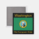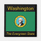 Uma imagem autêntica de qualidade superior da bandeira de Washington, feita entre o nome do Estado e o apelido sobre um fundo de cor de bandeira.