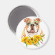 Buldogue bonito com óculos verdes e ilustração da cor da água do buquê de girassol
