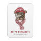 Feliz Howlidays! Envie seus desejos de férias para a família e amigos com este ímã de feriado personalizável. Ele apresenta um pitbull de aquarela vestindo um chapéu de malha e cachecol. Personalize este ímã de férias pitbull adicionando seus detalhes. Este ímã de Natal para cães está disponível em outros estoques de cartão.