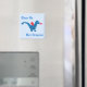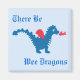 Íman quadrado com a imagem de um pequeno dragão azul que respira fogo com asas vermelhas e o texto "Há pequenos dragões" em azul claro. Veja toda a coleção do Kidz Korner Magnet sob a categoria HOME na seção KIDZ KORNER.