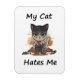 Este ímã x 4 polegadas de 3 polegadas mostra uma ilustração muito engraçada de um gato zangado, tocando no estereótipo clássico de que os gatos são livres, frios ou até abertamente hostis aos seus donos. Ele captura o humor dos gatos como pequenos tiranos que governam a casa e toleram os humanos apenas nos seus próprios termos.