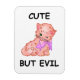 Íman x 4 polegadas de 3 polegadas com um gato que pode ser visto como adorável e como um pequeno "mau". Enquanto a ilustração é principalmente doce e caprichosa, ela poderia facilmente ser enquadrada como "enganosamente inocente" — o tipo de arte que toca a ideia de os gatos serem partes iguais amáveis e diabólicas.