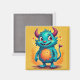 Meet our adorable and vibrant monster, a delightful fusion of playfulness and charm. With its fluffy blue fur, striking orange belly spot, and whimsical purple horns, this creature embodies a spirit of joy and friendliness.