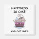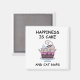 Magneta quadrada de 2 polegadas com uma ilustração lúdica de um design de gato com tema de aniversário que é bonito, caprichoso e humorístico.