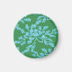 Imã Winding Peony Woodcut in Green and Aqua Magnet