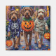 Adorável Wirehaired Apontando Griffons vestidos com fantasias lúcidas de Halloween carregar baldes de abóbora enquanto trick-or-tratando sob o céu iluminado. Este design festivo põe em evidência o casaco, humilde, os olhos cheios de alma e a personalidade amistosa da raça, capturando perfeitamente a atmosfera assustadora e divertida da noite de Halloween. Uma celebração animadora para amantes de cães e fãs de Halloween.